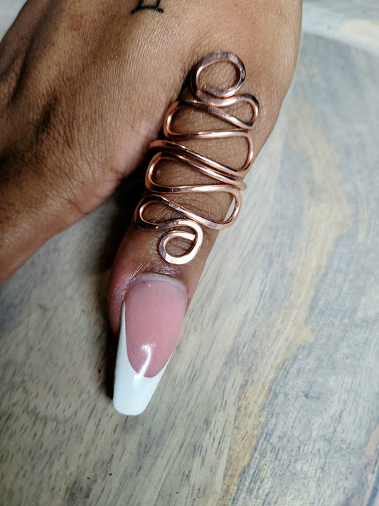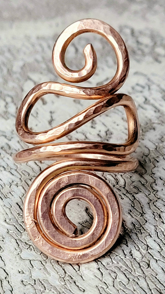 Hammered Pure Copper Long Scrolled Ring | Statement Ring
