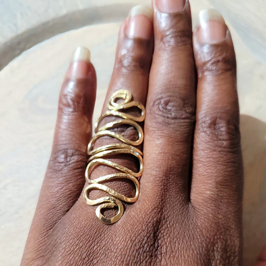 Hammered Brass Long Scrolled Ring | Statement Ring